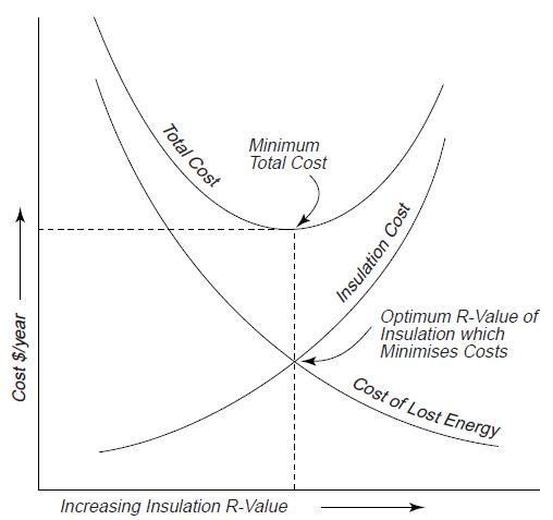 در صورت استفاده از عایق ایزوران با دانسیته پایین مثلا دانسیته های 10 و 12 باید توجه داشت که ضخامت ایزوران حداقل 2 اینچ یا 50 میلیمتر و بالاتر انتخاب گردد . انتخاب ضخامت بهینه عایق که ضخامت اقتصادی(Economic Thickness of Insulation ) موسوم است و در نمودار نشان داده شده بر حسب هزینه عایقکاری و نوع عایق ، هزینه انرژی و میزان اتلاف ، بسیار مهم است .