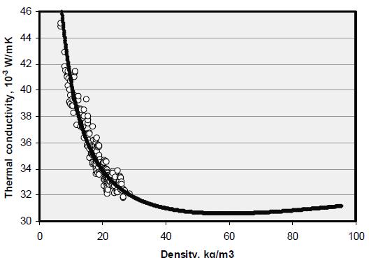 از طرفی λ به دانسیته عایق پشم شیشه بستگی دارد . چگالي پشم شيشه با مقاومت حرارتي آن تا محدوده 70 كيلوگرم رابطه مستقيم دارد در نتیجه ، استفاده از عايقي با اين چگالي از نظر حرارتي كاراترين و از نظر اقتصادي به صرفه ترين است .
